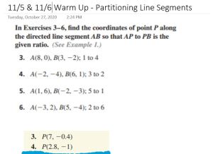 Warm up week of oct 13 Introduction to Coordinate Geometry